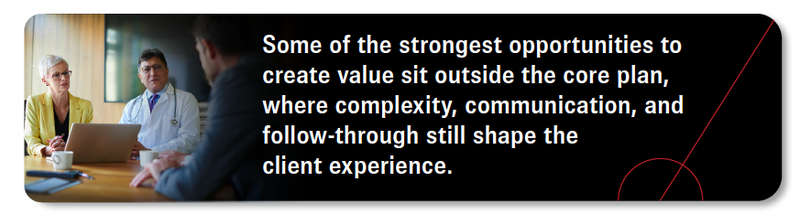 Core medical coverage still does a lot of the heavy lifting. It drives the meeting, anchors the strategy, and usually takes up most of the oxygen during renewal. But it is rarely the only part of the benefits program shaping the client relationship once the plan year is underway.