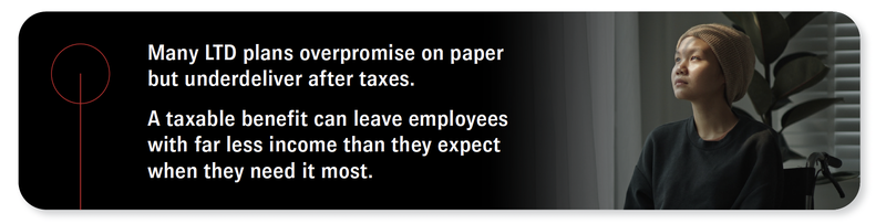 In a typical setup, the employer pays LTD premiums with pre-tax dollars. That sounds efficient, but it means the benefits are taxable when an employee goes on claim. So while the plan might advertise 60 percent income replacement, after taxes, the real number may land closer to 40 or 45 percent.