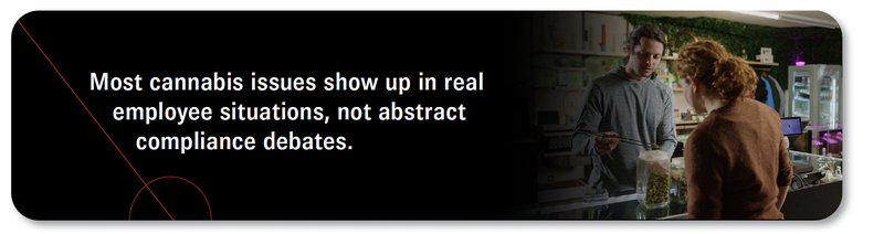 Cannabis-related questions rarely surface as abstract compliance discussions. They tend to appear in real situations that directly affect employee experience and benefits administration.