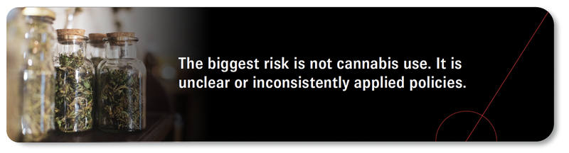 Risk does not stem from cannabis itself. It stems from policies that are unclear, outdated, or applied inconsistently.