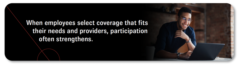 When employees choose their own coverage, they tend to engage more thoughtfully. Often, brokers see stronger participation and fewer reactive complaints because the decision feels personal, not imposed.
