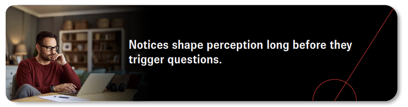 What used to feel like background administration now intersects directly with real decisions. When notices don’t connect to those moments, they stop functioning as information and start functioning as noise.